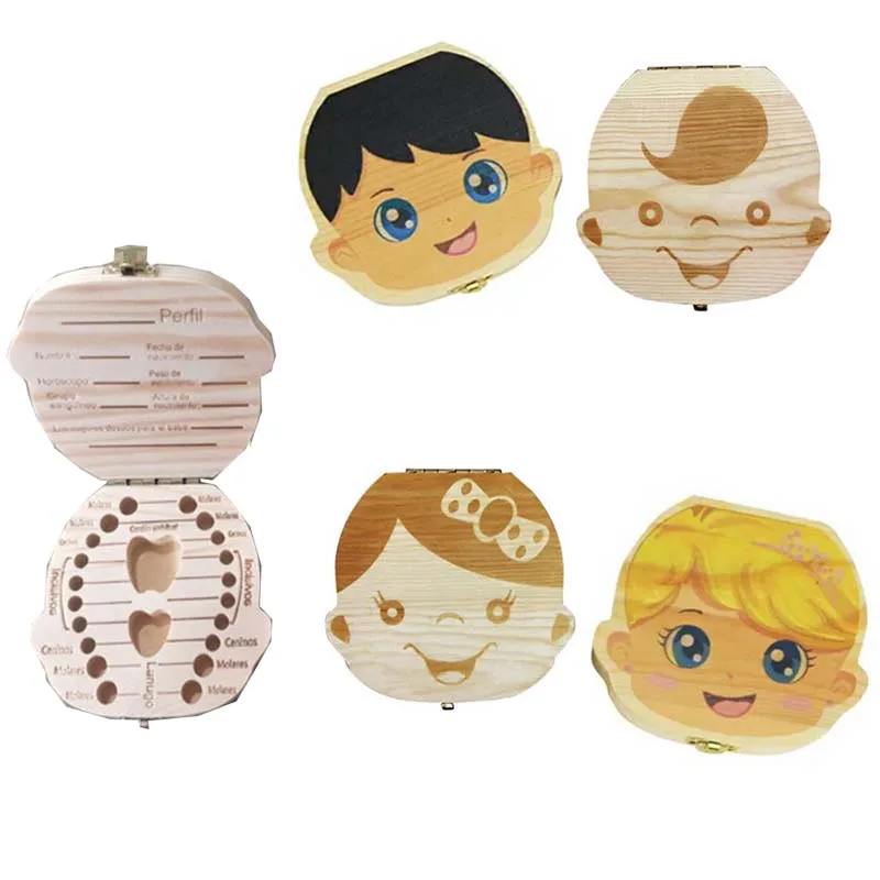Name: Caja organizadora de diente de bebé, estuche para guardar los dientes de leche en español, inglés, portugués y ruso, umbilical, lanugo, recuerdo