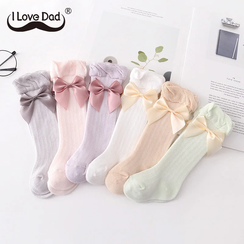 Name: Calcetines con lazo para bebé recién nacido, de encaje, transpirables, suaves, para niños y niñas, de Color sólido hasta la rodilla, largos para niños