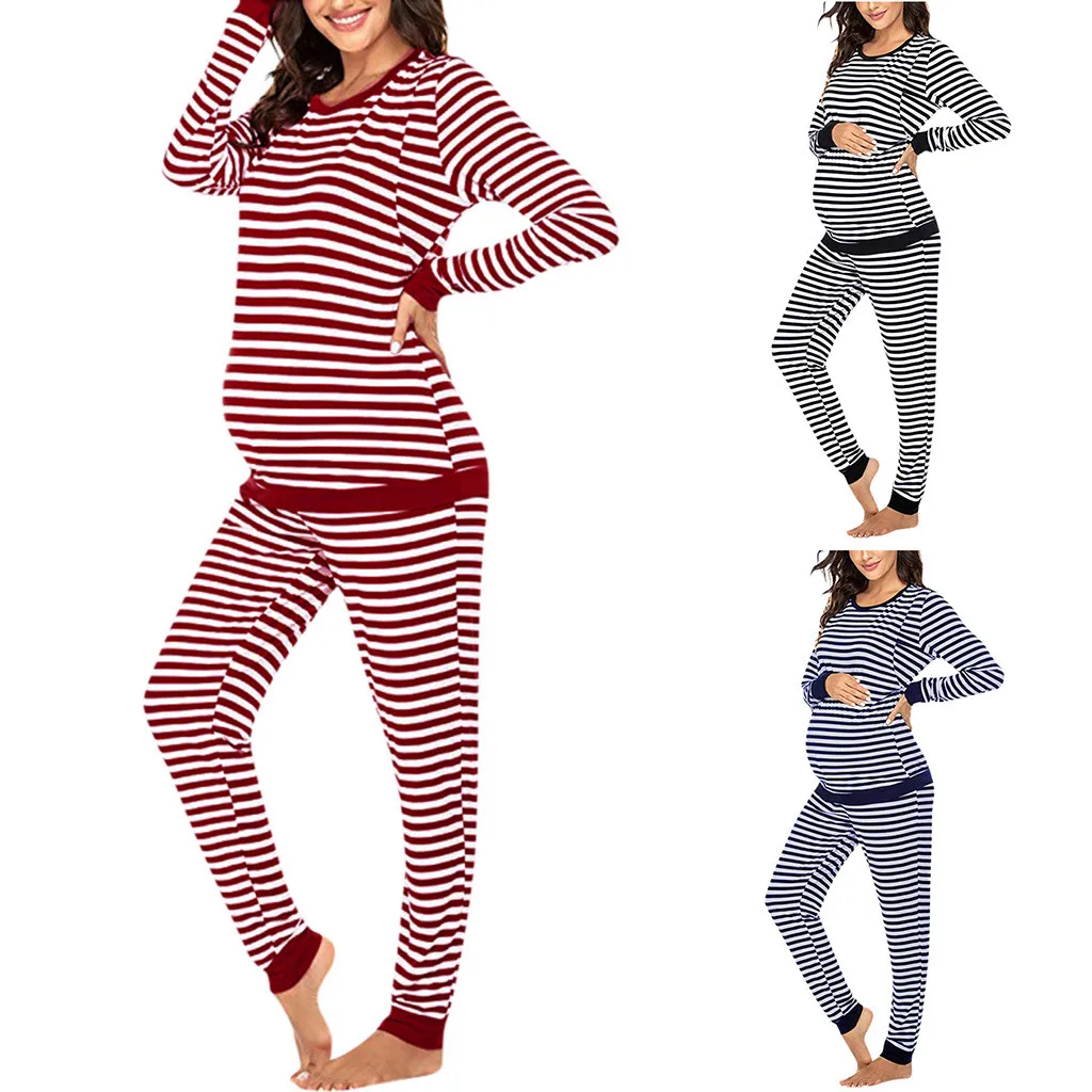 Embarazo y maternidadNuevo Ropa de dormir de maternidad para mujer, de manga larga Camiseta de lactancia, Tops + Pantalones a rayas, Conjunto de Pijama, traje de Embarazo, n. ° 4, 2021 B6qpejY7dbe